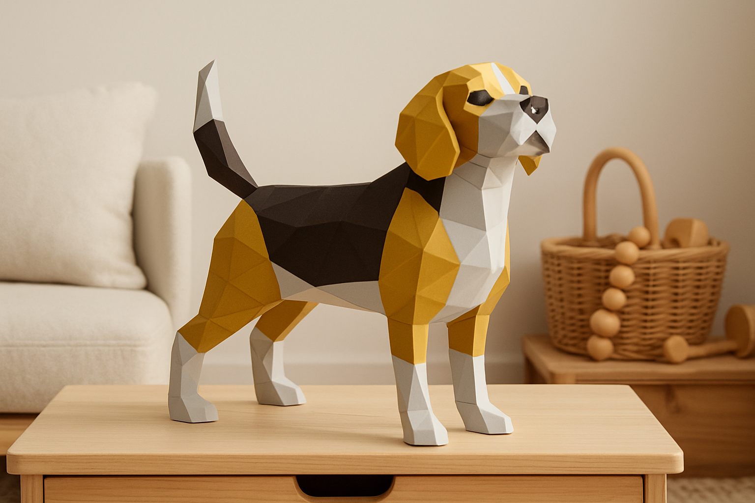 Build a paper Beagle 3D model that blends playful energy with calm design. A rewarding craft and a decor gift for dog lovers and families.