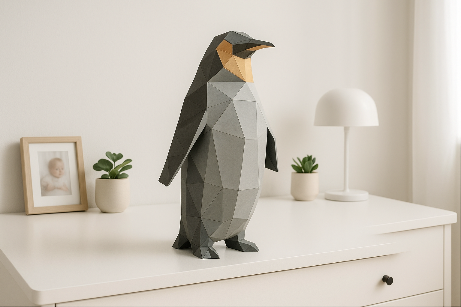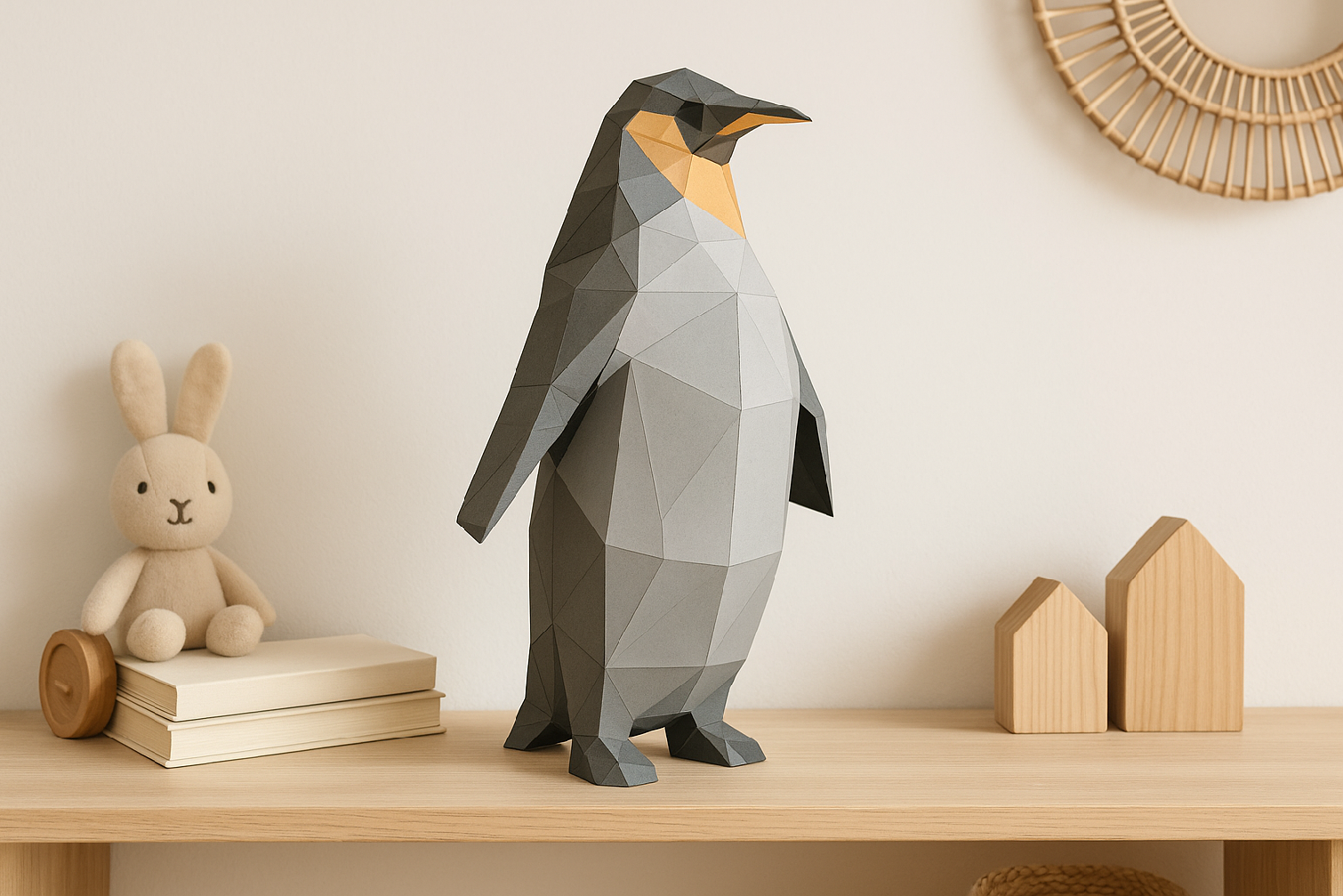 Make a paper Penguin 3D model for a playful touch of winter at home. A fun DIY craft for families that becomes a cute decor gift.